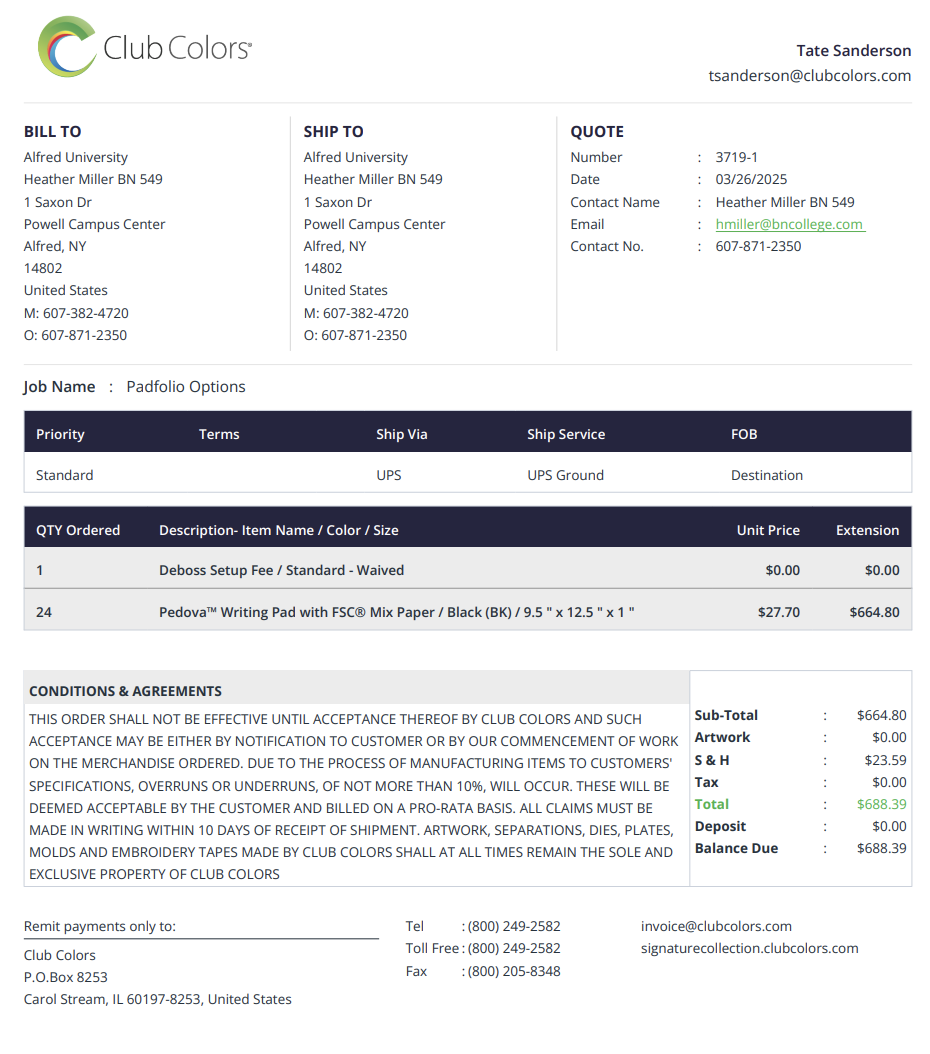 | Pedova™ Writing Pad with FSC® Mix Paper / Black (BK) / 9.5 " x 12.5 " x 1 " | 27.7 | 24 |
