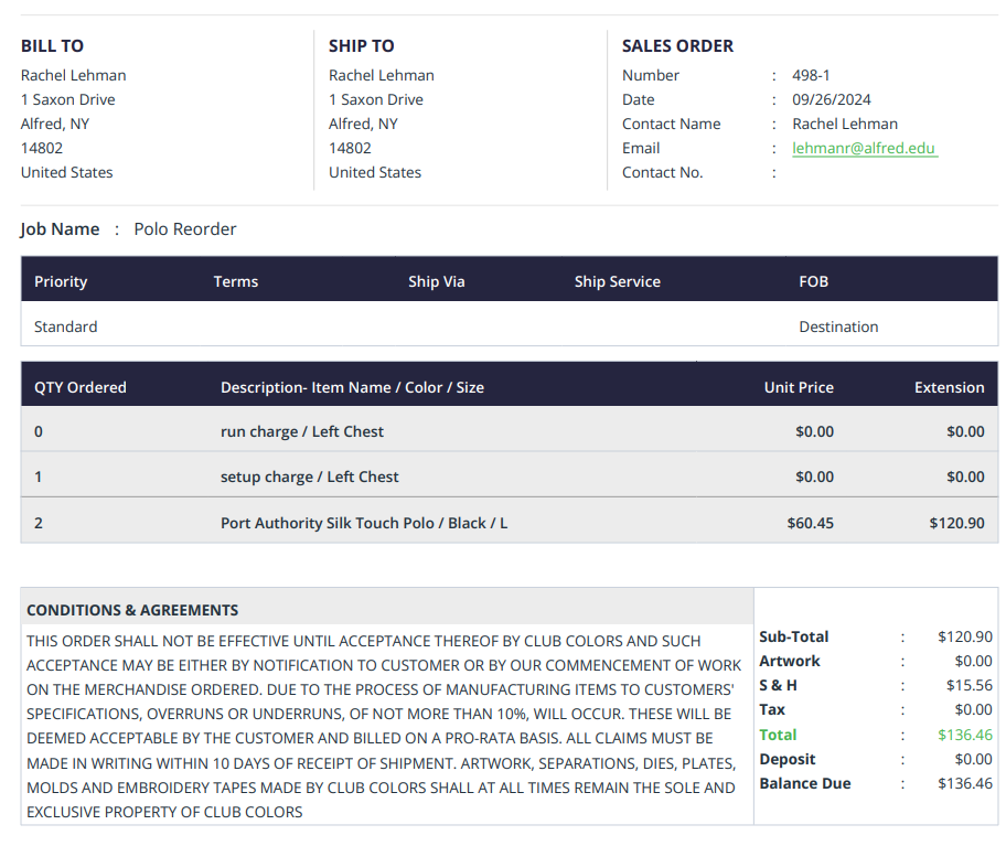 | S&H | 15.56 | 1 |