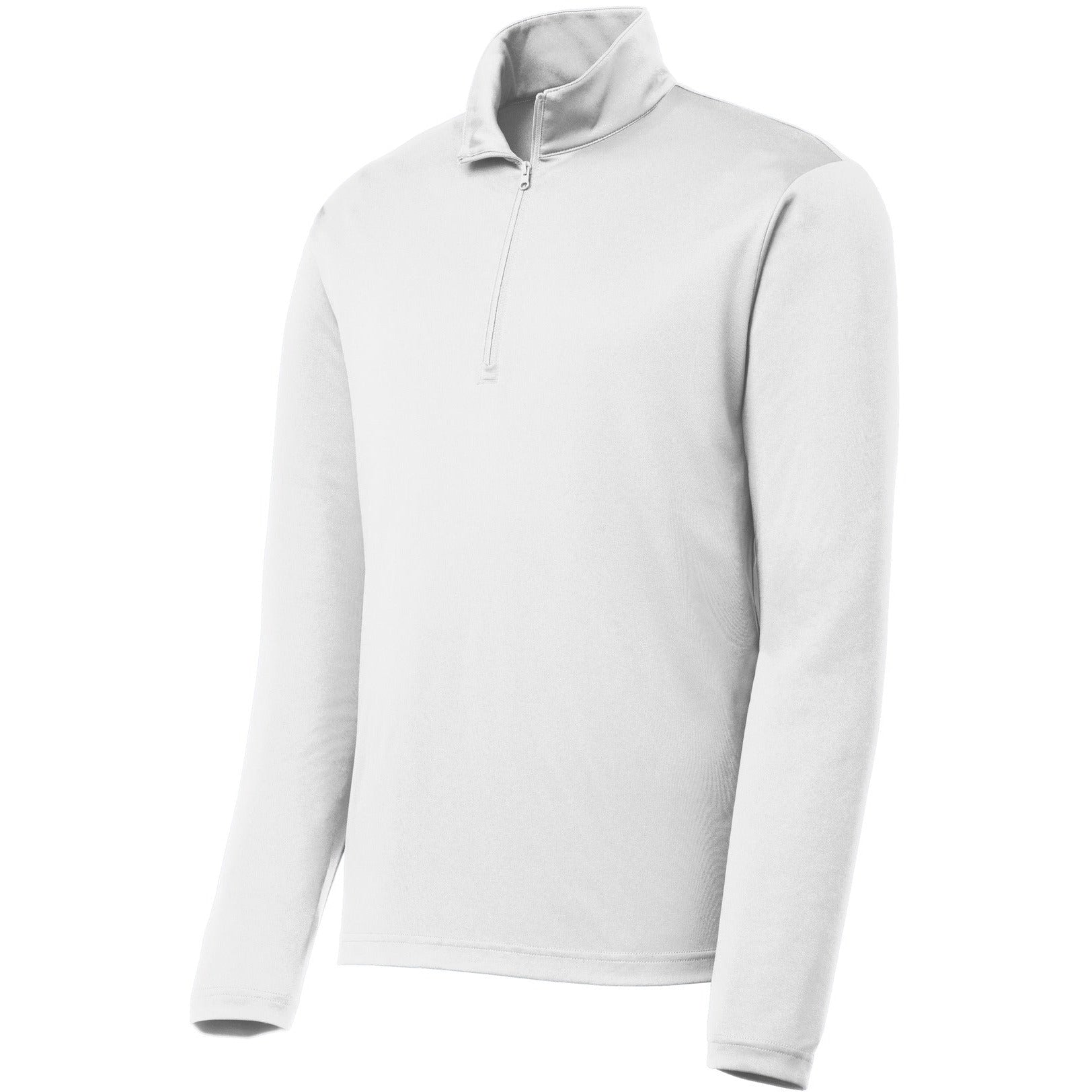 This lightweight pullover locks in color and wicks moisture. It's versatile enough for year-round wear.